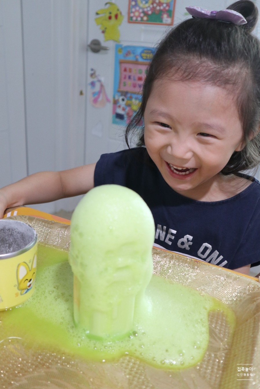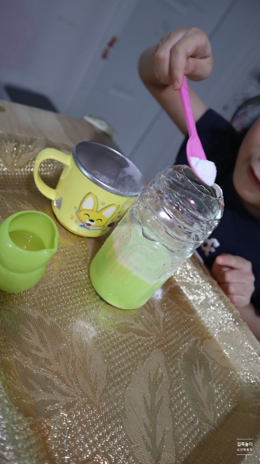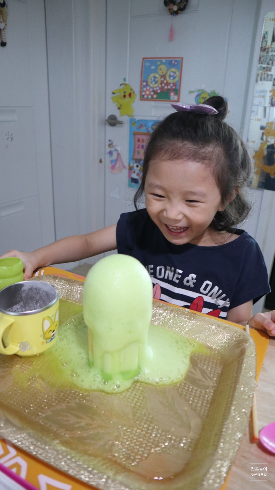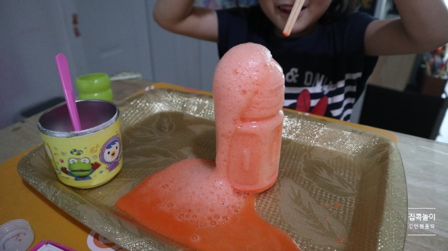 화산 폭발 실험입니다.딸의 표정이… 정말 재미있다고 말해 주네요 ㅋㅋㅋㅋㅋㅋㅋㅋ