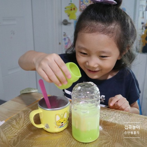 스스로 해보는 성취감을 느낀다!플라스틱 병에 입구가 조금 좁아서 아이가 혼자 하기에는 많이 쏟아질 것 같아서 잘라줬는데…그래도 흘리고 있어요ㅋㅋㅋㅋㅋㅋㅋㅋㅋㅋㅋㅋㅋㅋㅋㅋㅋㅋㅋㅋ