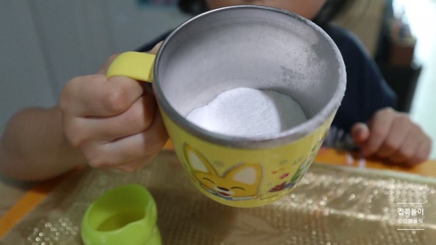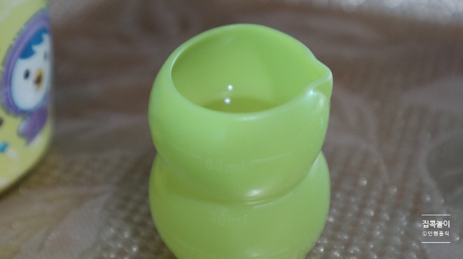 어떻게 해서든 아이에게 직접 실험시키고 싶다 보고 있으면 손에 묻히고 싶지 않았어요.마침 세제 볼을 보니 이렇게 붓기 쉬운 홈이 있어 사용하기 쉽다고 생각했습니다.