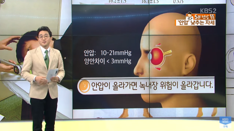 안압은 수면 자세와도 관계가 있습니다. 고려대 안암병원 안과에서 연구한 자료에 따르면 위를 보고 잘 때와 옆으로 누울 때를 비교한 결과 안압이 최대 3.2까지 차이가 나는 것을 확인했다고 합니다.