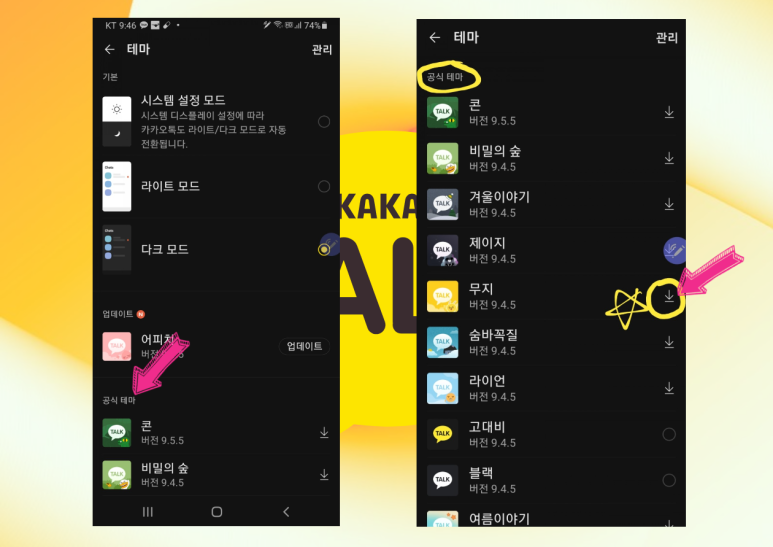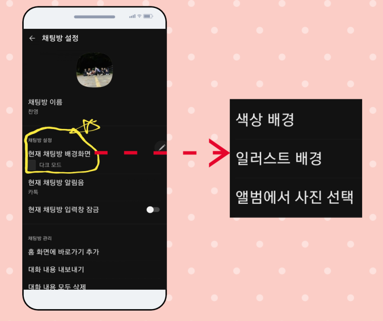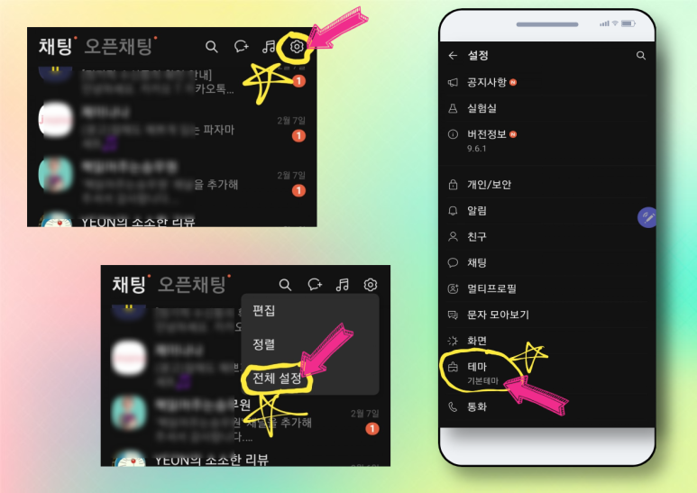 카카오톡 대화방 벽지변경 카카오톡 테마설정 및