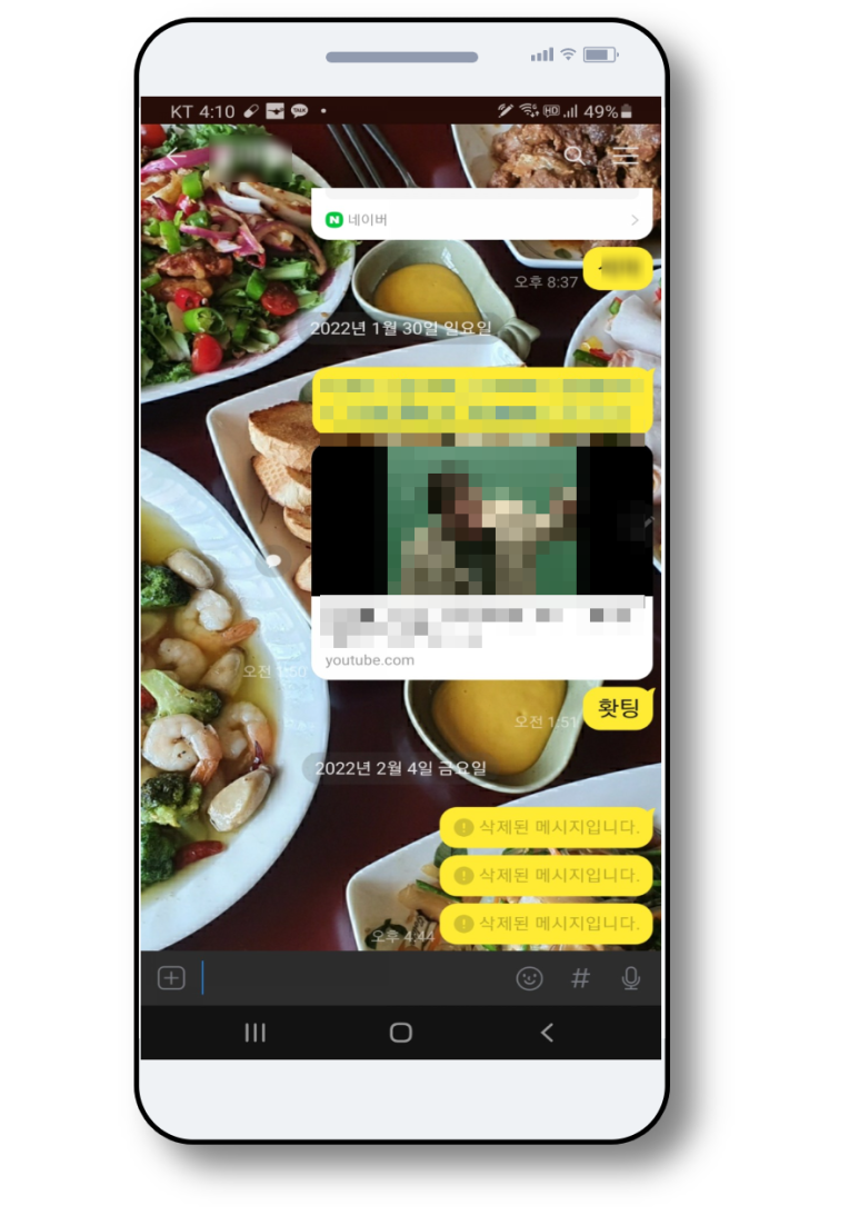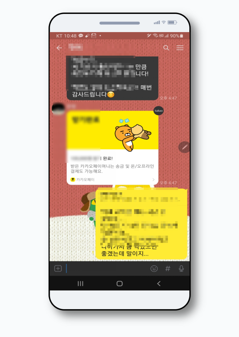 제가 선택한 사진이 채팅방 배경에 적용된 모습입니다. 예쁘긴 한데 너무 정신이 없네요. ^^