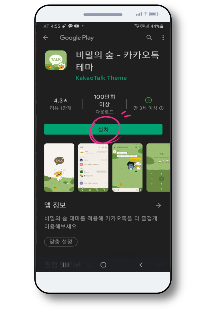화살표를 누르면, 이렇게 플레이 스토어로 이동합니다만,<설치>를 하면 됩니다.