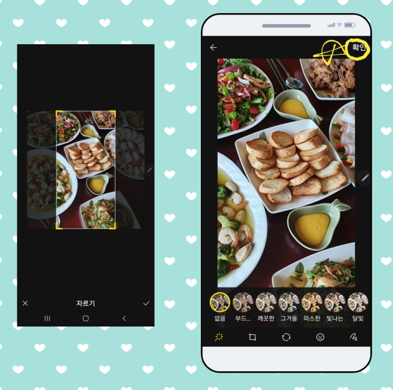사진을 선택하면 그 자리에서 바로 끌 수도 있고 필터를 걸 수도 있기 때문에 매우 편리합니다.