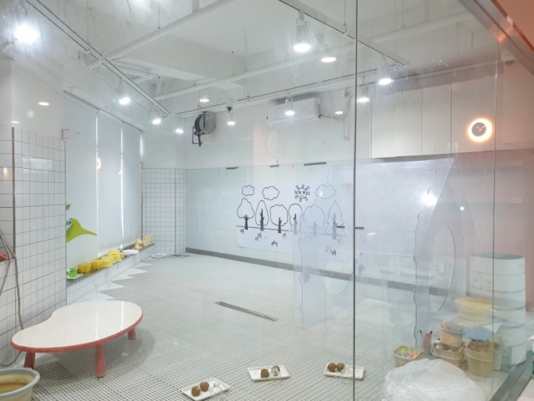 이곳은 수업이 끝나기 전에 아이들이 놀 수 있는 편백나무 교실(안내는 수업 후에 이용하도록 되어 있지만 수업 전에 미리 이용하는 아이들도 있는 것 같다)