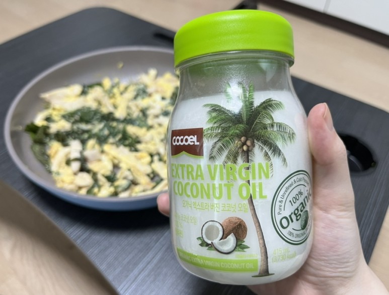 코코넛 오일은 그냥 숟가락 하나 떠먹어도 되고 계란 프라이 할 때 쓰면 더 고소함이