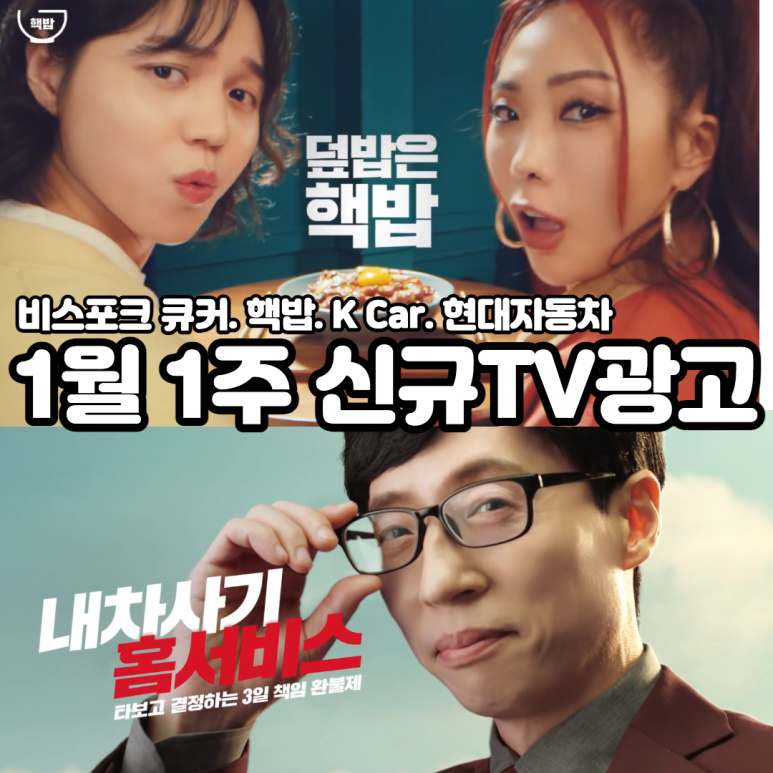 1월 첫째 주 두 번째 광고 소개 포스팅이다이번에는 중독성 있는 CM송을 선보인 삼성전자의 비스포크 큐커와 핵밥 광고를 소개하고, 유재석 씨가 거인처럼 서울과 제주도를 오가는 국가 카 대표의 KCar 광고를 리뷰한다.마지막으로 현대자동차의 자율주행 광고 본편이 공개돼 알아보자.삼성전자 비스포크 BESPOKE 큐커 찍어먹기부름큐커 – 제품편 2022.01.05.(WED) 비스포크 제품을 통해 가전제품에서도 트랜디한 느낌을 전달하고자 하는 삼성전자에서 CM송부터 영상까지 힙스러운 신규 광고를 공개했다.