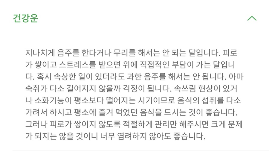 소름끼치는 이달의 운세! 2022년 2월, 술을 잘 마시지 않는 내가 가볍게 맥주 한 잔을 마셨을 뿐인데 스트레스도 쌓이고 몸도 아프고 해서 결국 문제가 되고 입에는 구내염, 위에는 아파서 데굴데굴…결국 내과에서 위가 부었다고 약 일주일치를 줬는데도 이렇게 먹어야 하나 했는데 이렇게 먹어서 낫지 않으니까. 면역력도 떨어지고 몸 상태도 엉망인 것 같아요.