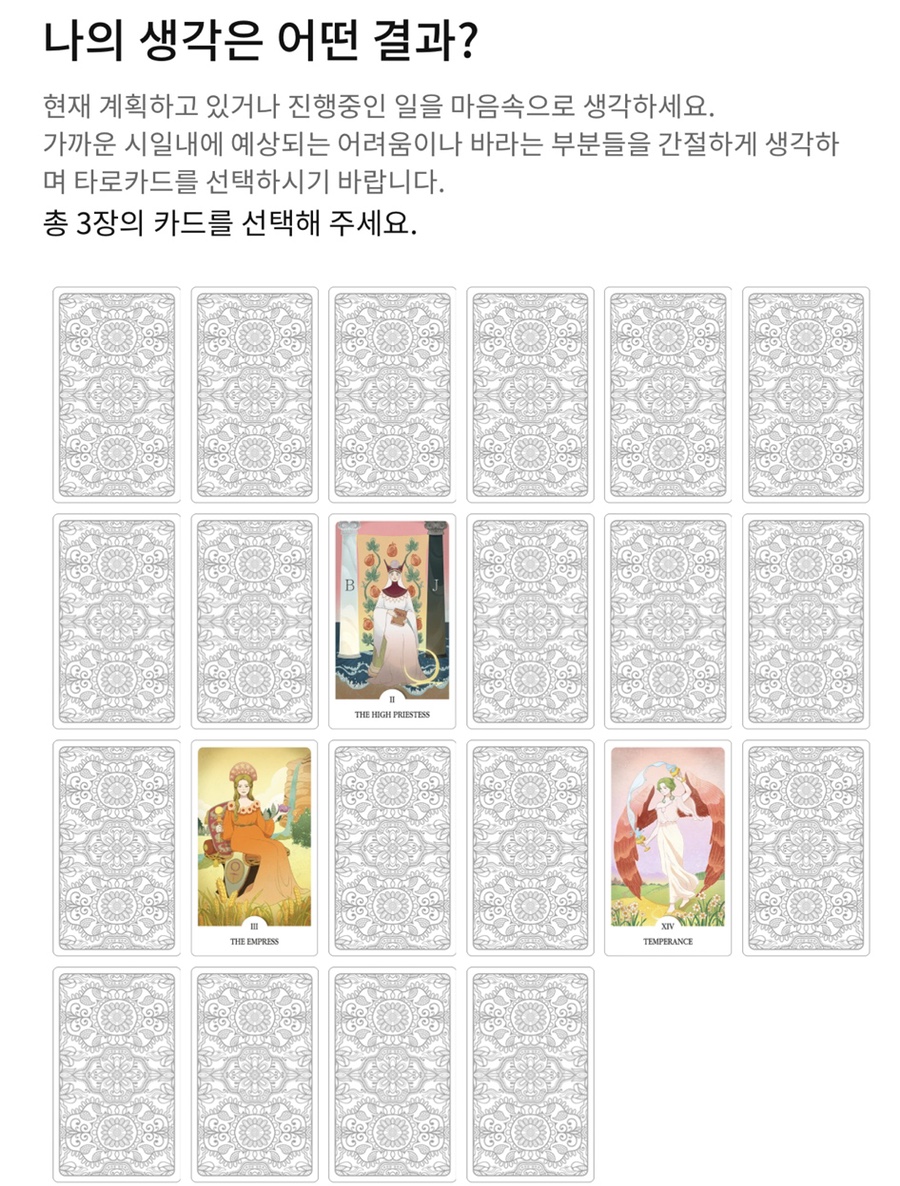 그리고 재밌는 타로… 인풀엔서가 될 수 있을까 생각을 해서 골라봤어요시간을 들여서 노력하라는 말이 나오네요(?) 이번에도 안 될 것 같아요.. 허허 노력을 하면 언젠가는 되겠죠!