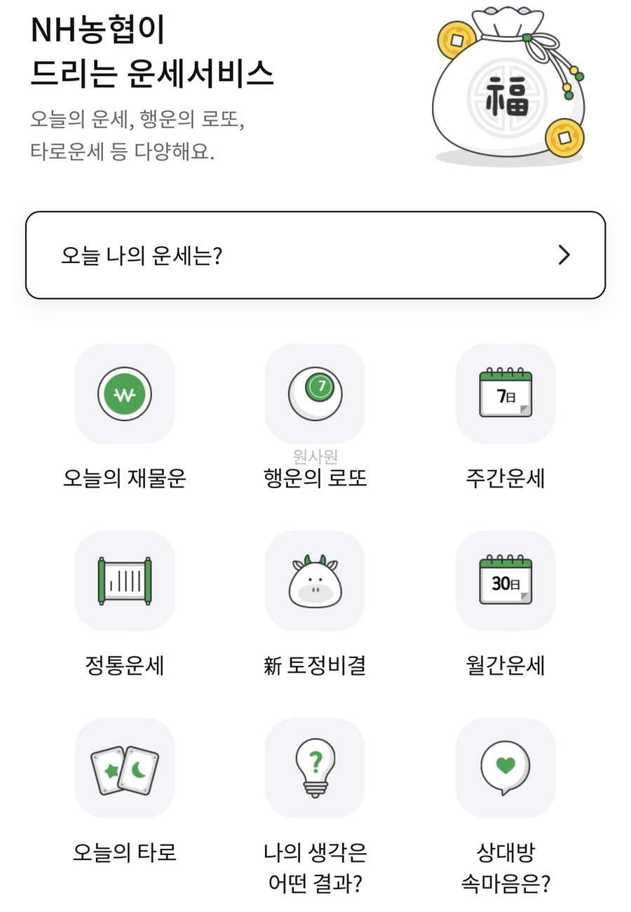 오늘의 운세타로, 농협뱅킹 무료로 확인