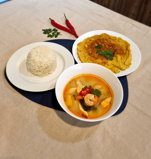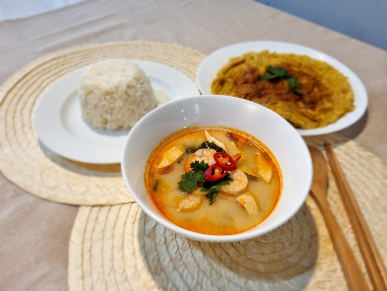 근데 혹시 태국 사람들이 집에서 먹는 음식이 궁금하지 않아요? 저희 마이컬차이즈에서는 태국에서 온 “뷔” 선생님이 집에서 즐겨 먹는 음식으로 쿠킹 클래스를 운영하고 있습니다. 첫 번째 메뉴는 여러분이 아시는 ‘똠양꿍’과 ‘카이티아오’라는 태국식 오믈렛입니다.