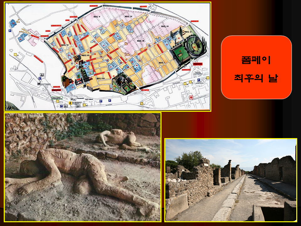2. 화산재의 부정적인 면:오늘날 우리가 많이 사용하는 전자기기, 통신 등에 피해를 주고 항공기의 운항도 어려워집니다. 화산재가 비행기 엔진으로 들어가면 제트 엔진이 꺼집니다.1) 폼페이 마지막 날 : 수백 도에 달하는 화산재에 매몰되어 2000년 가까이 잃어버린 도시가 되었지만, 19세기 우물을 파기 위해 땅을 판 농부들에 의해 발견되어 일부가 발굴되었습니다. 화산재로 덮여 화석화된 당시 폼페이 시가지와 사람들의 모습입니다. 그런데 공교롭게도 폼페이 유적은 로마 시대의 도시 구조와 사람들의 생활 양식이 잘 보존되어 있어 역사 연구에 많은 자료를 제공하고 있다. 네.