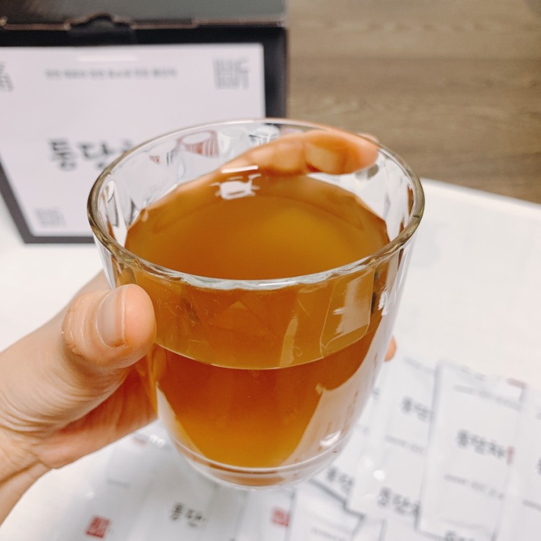 한 잔 먼저 따라봤는데 색깔이 갈색이고 향이 전혀 강하지 않아서 음료로 마시기 좋은 느낌이었어요.~