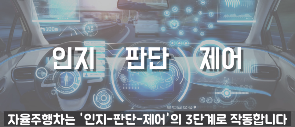 먼저 자율주행차에 대해 알아보고, 자율주행차는 인지-판단-제어 3단계로 움직입니다.