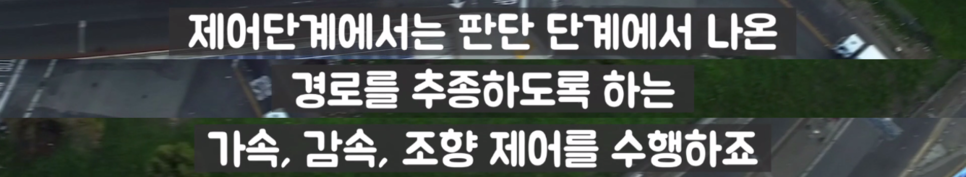제어 단계에서는 판단 단계에서 나온 경로를 따르도록 하는 가속·감속·조향 제어를 실시합니다.