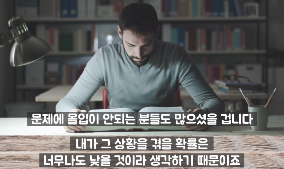 하지만 책을 읽으면서 문제에 몰두하지 못하는 분들도 많으셨을 거예요.제가 그 상황을 겪을 확률은 너무 낮다고 생각하기 때문이죠.