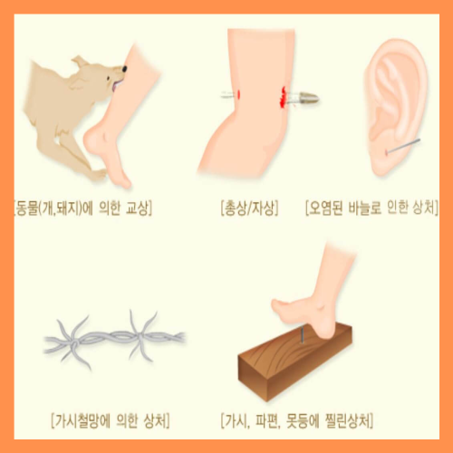 우리 몸의 더러운 상처를 통해 유입됩니다. 작은 상처, 화상이나 비위생적인 외과 조작, 동물에 물려 감염될 수도 있습니다.