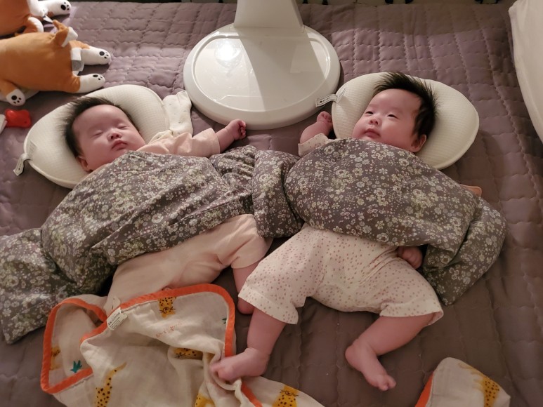 둥이와 첫째 아이와 함께 방으로 들어가 딥슬립을 시작
