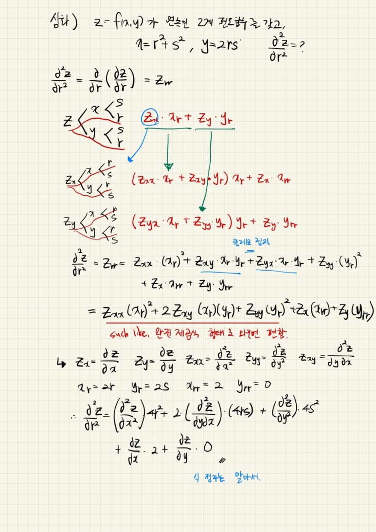 수형도 필요성의 이유=독립변수가 2개인 합성함수의 2계 편미분 증명을 이해할 수 없으면 그대로 기억하자.