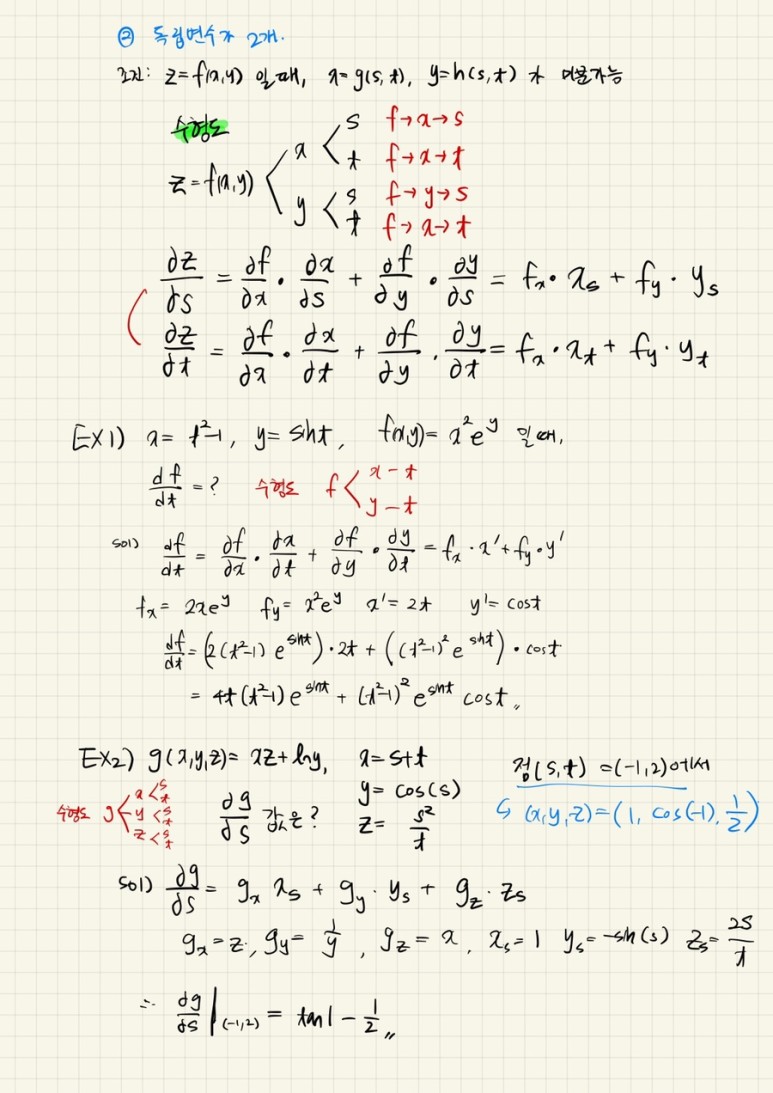 합성함수의 미분은 수형도를 중요하게 생각해야 한다. 수현이도 많이 연습하자 현재와 같은 독립변수가 하나일 때 합성함수 미분은 간단하지만 독립변수가 둘 혹은 셋, 이층 미분, 삼층 미분 등으로 복잡해지면 우왕좌왕할 것이다.