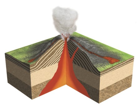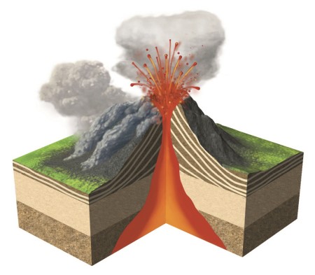 폭발형 화산: 점성이 있는 용암이 특징적이며 암석, 용암, 화산 가스가 강력하게 분출한다. 암석 조각이 위로 올라가기도 한다. <출처 : 네이버 지식백과>