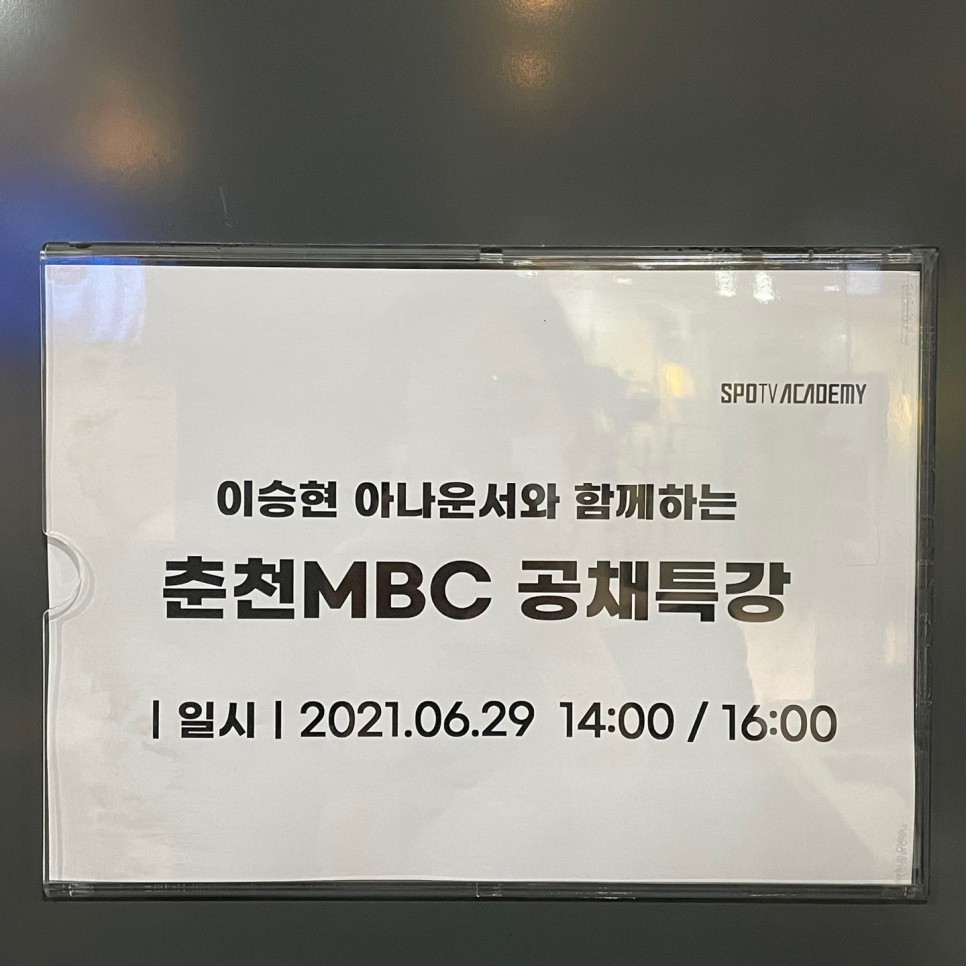 우리 모두 오늘 들은 특강 내용을 잘 반영하여 춘천 mbc 지원에 열을 올려봅시다!스포티비 아카데미가 응원합니다.