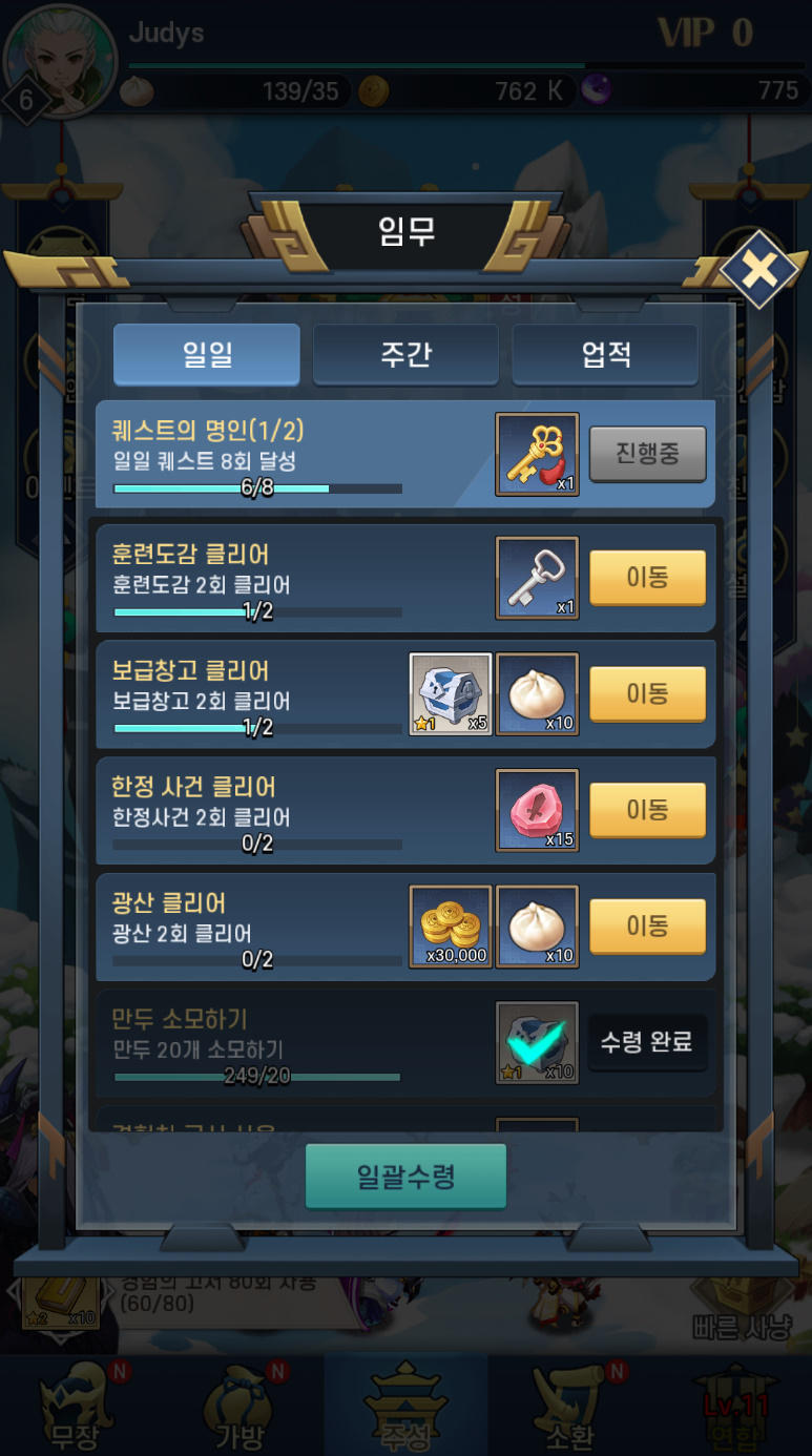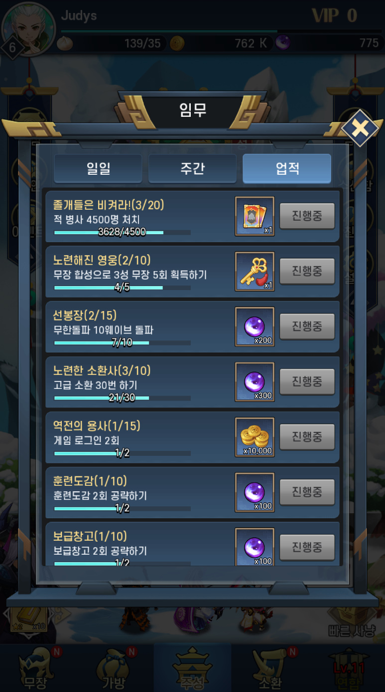 참고로 평소와 같다면 저는 위 행사의 혜택을 더 크게 강조했겠지만 무한돌파 삼국지 리버스의 경우 매일매주 진행되는 임무와 업적으로 획득할 수 있는 보상이 매우 강력하기 때문에 오늘은 이곳에 특별한 한 번 초점을 맞춰두고 싶습니다. 실제로, 주어지는 아이템은 대부분이 육성 과정에서 사용되는 재화로 구성되어 있기 때문에, 이것들만을 잘 신경써서 플레이하는 것만으로도, 보통의 과금 상품에 뒤지지 않는 만족감을 얻을 수 있지 않을까라고 생각합니다.