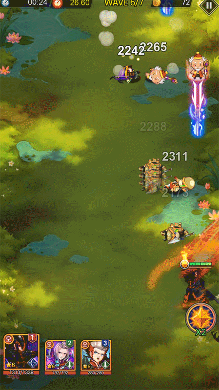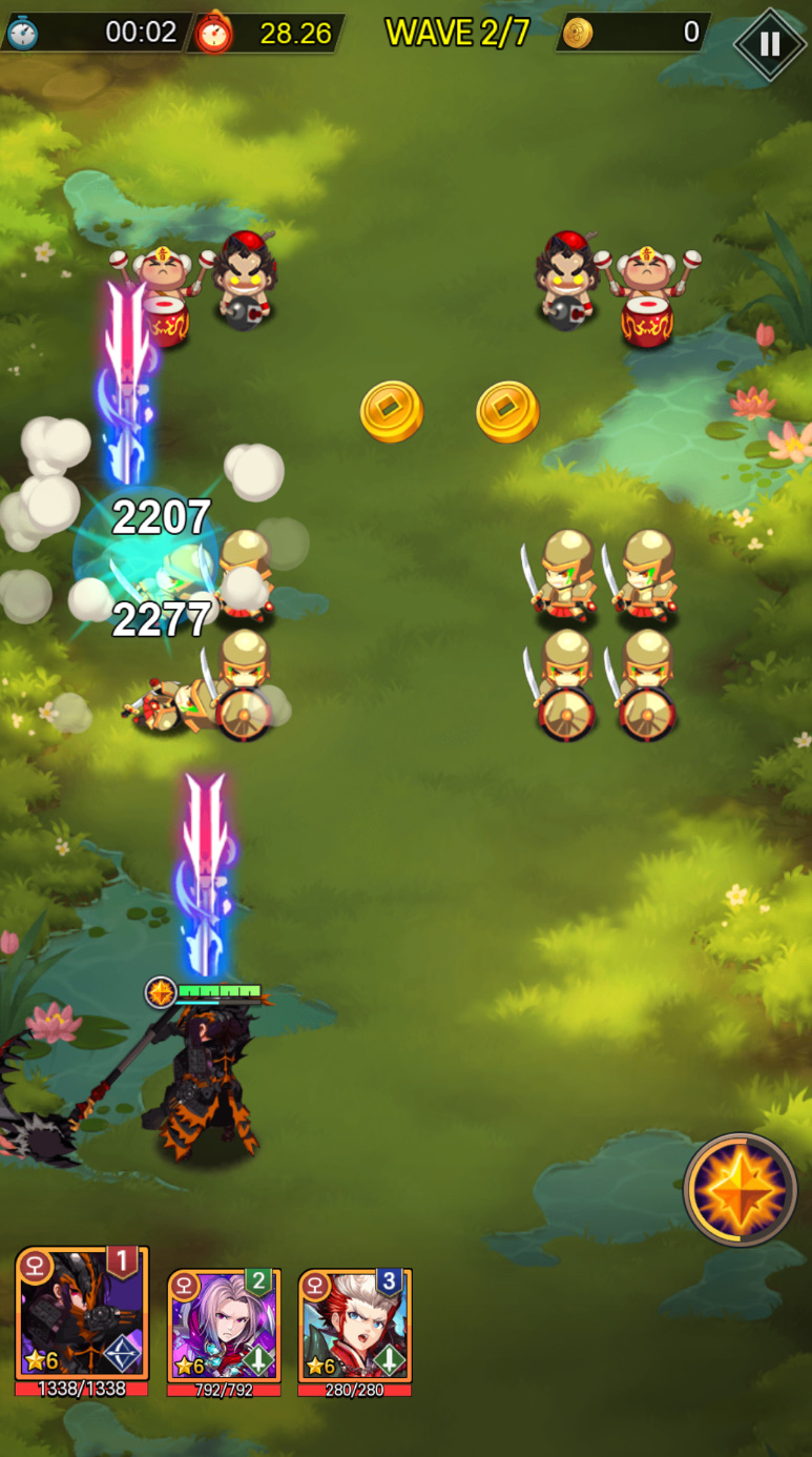특히 여러 장수의 특색과 보유 특성에 따라 다양한 패턴의 전투를 경험할 수 있다는 점은 더욱 다양한 재미를 선사하는데, 예를 들어 다소 공격 속도는 느리지만 적을 관통하거나 일정 확률에 따라 범위 피해를 주는 캐릭터가 있거나 어떤 무장은 매우 빠르게 투사체를 뚫고 나가지만 적을 통과하지 못하고 조금씩 정리해 나가는 방식으로 적을 물리쳐나가야 합니다.
