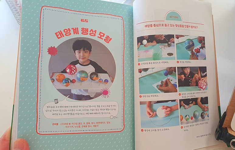 “샐러드 미술학원, 1년 동안 집에서 놀면서 공예 실력이 많이 늘어서 쉬운 만들기를 하자니 반응이 별로!” 그래서 검색 끝에 고른 이 책은 과학, 미술 영역이 통합된 놀이가 많아서 굿! 딱, 7y 아들 수준으로/ 엄마가 참고해서 가르치기에도 굿!