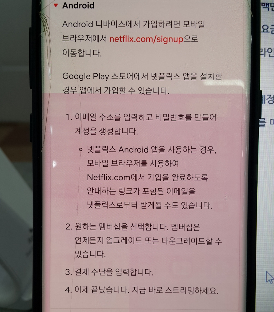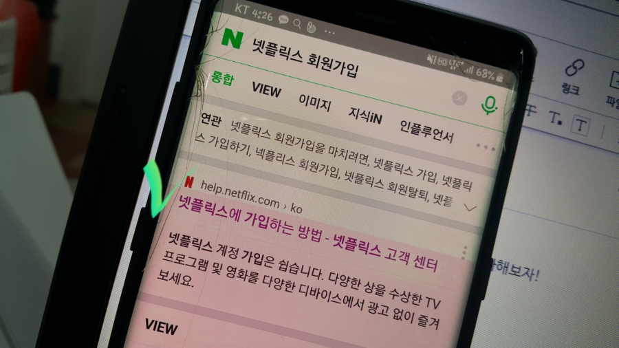 중간에 네이버 검색창에 넷플릭스에 등록하는 방법 – 넷플릭스 고객센터가 표시되어 있습니다. 터치해 주세요