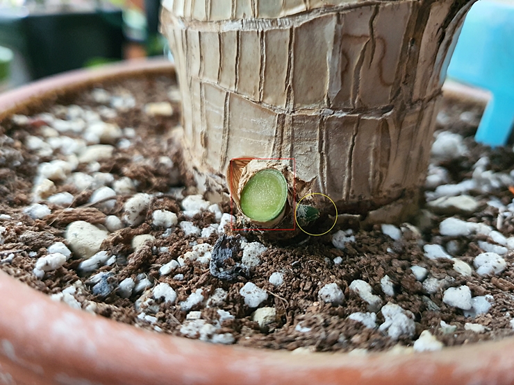 5월 6일 토요일 뿌리가 더 자란 모습이 확인되었다..더 뿌리가 커질때까지 기다려야 하는데..급한 나는…꽂이를 시도해본다…