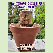 4월 13일 같은 날 꽃꽂이를 한 또 다른 녀석은 뿌리가 나지 않아서 뭔가 잘못된 것인가 했는데..4월 13일5월 6일, 윗것을 꺾어보니, 이 녀석도 하얀 뿌리가 나오는 것이 보였다.5월 6일5월 7일 일요일… 한번 뿌리가 나오면 눈에 보일 정도로 뿌리가 성장하는 것 같다.. 꺾꽂이라는 것을 해보고 싶어서, 먼저 그놈은 서둘러 꺾꽂이를 했는데… 이놈을 뿌리째 성장하는 모습을 더 관찰한 후에 꺾꽂이를 해보려고 한다.. 확실히 뿌리가 나고 나서……5월 7일다른 분들처럼…나도 번식에 성공해서 무료분양도 하고…그게 가능하다면 얼마나 좋을까?#그루터기행운목 #행운목 #가지치기 #물주전자 #번식 #뿌리나옴 #꽂이나무