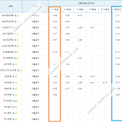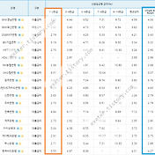 은행 신용등급별 금리(%) 1~2등급 3~4등급 5~6등급 7~8등급 9~10등급 평균금리 IBK기업은행 4.435.005.397.23-4.49 KB국민은행 4.375.426.557.34-4.58 NH농협은행 4.104.715.6424.69-4.40 신한은행 4.145.356.994.23 우리은행 4.454.725.768.6811.60 카카오뱅크 -4.86.96.96.96.96.86.