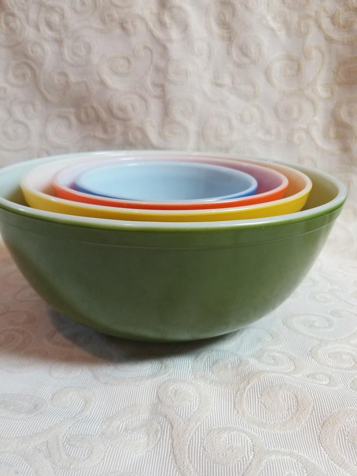 빈티지 파이렉스 혼합용 그릇 4세트 오리지널 빈티지 제품입니다. ^^제가 처음 소개하는 제품에서 나도 파이렉스 같은 세트 상품이 있습니다 저는 시어머니가 선물로 주셨는데 정말 잘 쓰는 제품의 하나입니다.프린트가 벗겨지거나 소중하게 쓰고 있는 제품입니다. ^^4사이즈로 각각 사용 빈도가 정말 좋은 제품, 그리고 칼라감까지 가해지는 시간이 지나도 유행을 타지 않고 인기 있는 상품 중 하나입니다. 1980년대의 뜨거운 제품의 하나로 상태가 좋은 것을 찾기란 정말 어렵습니다.이번의 입하 분, 가장 작은 파란 색만 프린트 직구가 보입니다. ^^ 큰 사이즈는 사용감도 크게 보이지 않고 보관상의 상처 정도의 사진에서 꼭 확인하십시오!환율도 높고 입고까지 고민하는데 예쁜 색상 구성 4종은 좀처럼 볼 수 없는 제품이니 데려왔습니다. ^^컬러감이 정말 사랑스러운 파이렉스 혼합용 그릇 세트 판매합니다^^그린 27cm 11cm/ 노란 색 22cm 10cm/오렌지 18cm 9cm/블루 14.5cm 8cm