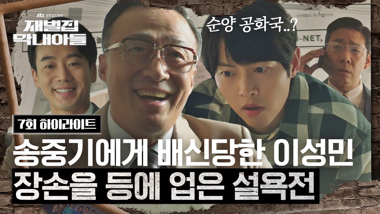 대사건…하필 이날은 장남 장남, 장남, 그리고 아끼는 진양철 회장 장남, 진성준, 모현민의 결혼식 날! 진도준의 빅픽처는 역시 옳았고 무사히 DMC 입찰에 성공하며 순양가의 허를 찌른다. 늦게 도착한 진도준은 그래도 결혼식 사진은 찍을 수 있었는데 하필 위치가 진 회장 옆자리. 이때 두 사람이 나눈 대화가 정말 압권이었다. 나는 왜 갑자기 할아버지가 진도준을 향해 고개를 돌렸는지 궁금했는데, 이에 대한 설명도 나중에 나온다. 승양을 자기 돈으로 사겠다는 생각은 버렸다며, 대신 할아버지처럼 내가 할 수 있는 모든 수단과 방법을 동원해 승양을 사겠다고… 정말 이 장면이 덜덜 떨리고 재벌 막내아들 8회 중 베스트 명장면으로 기억된다.