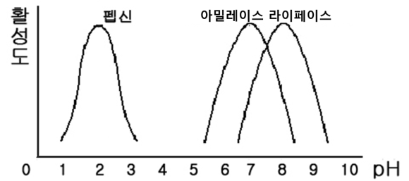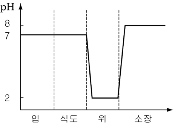 (가) [소화기관별 pH] : 소화기관별 pH가 다르기 때문에 효소는 각 소화기관에 최적화되어 있다.