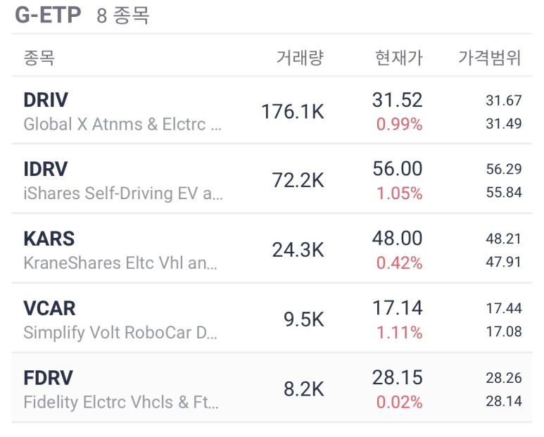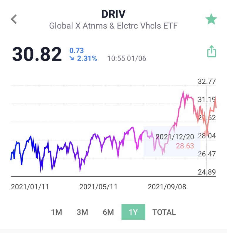 거래량은 DRIV가 확실히 높은 편이다.시가총액도 DRIV의 절반정도지만,
