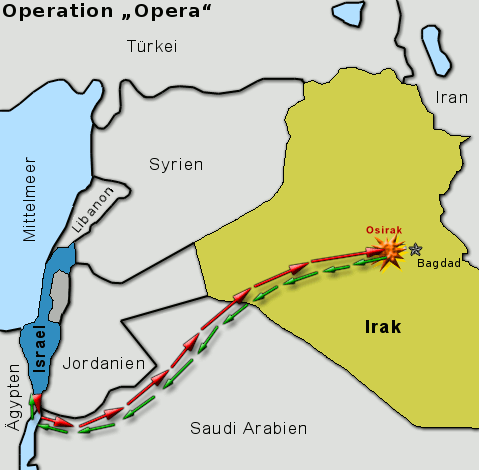 Menachem Begin은 정부 회의에서 오페라 작전에 대해 이런 연설을 했는데 거대한 시계가 우리 머리 위에서 째깍거리고 있습니다. 후세인은 우리의 이스라엘을 위협하는 핵폭탄을 만들려고 하고 있으며 그는 우리에게 핵을 쏘는 것을 서슴지 않을 것입니다라며 오페라 작전을 승인했다.