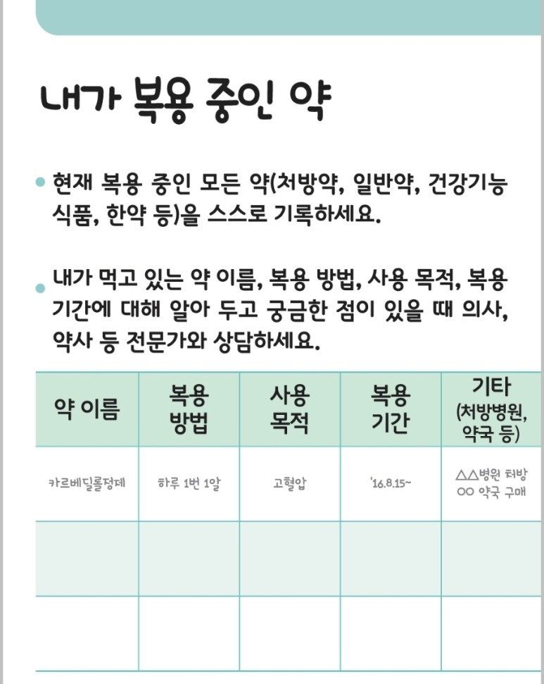 #고령자 #복약수첩 #고혈압 약 #당뇨약 #고지혈증약 #의약품안전사용교육자료 #약물안전 #식약처 #이천약국 #중리동약국