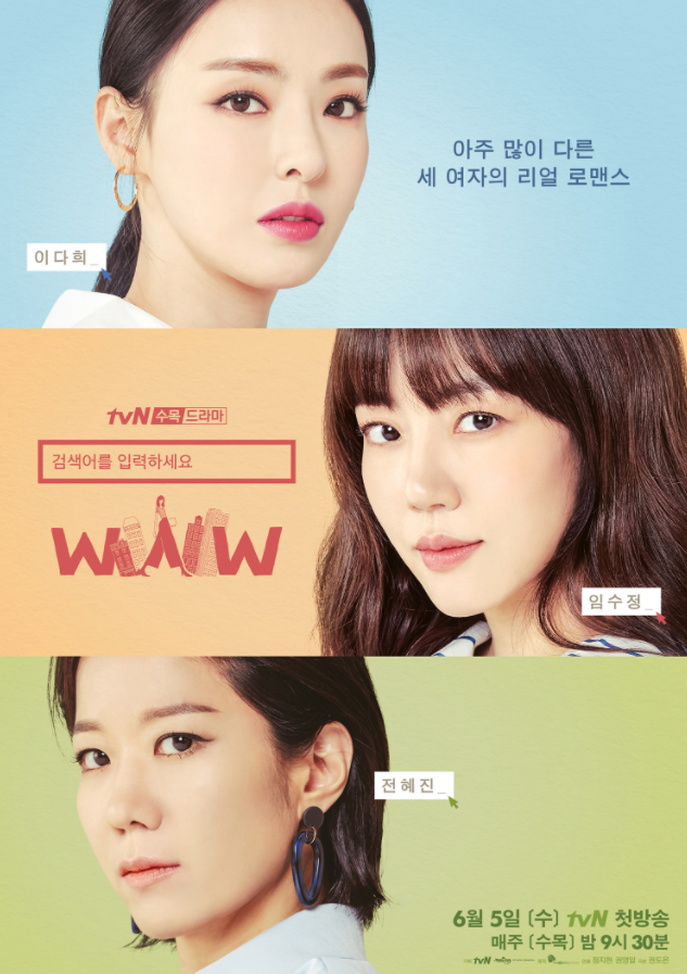 오늘 소개해드릴 드라마는 검색어를 입력해주세요 WWW입니다. 그녀의 사생활의 뒤를 이어 2019년 6월 5일부터 7월 25일까지 방영된 tvN 수목드라마로 제목인 WWW의 의미는 본래의 World Wide Web과 동시에 세 여자(Woman)속의 의미를 담고 있는 드라마입니다.