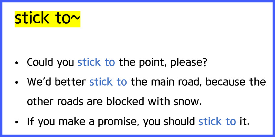 Are you sure about that ? Lo ok , Pam ? Maybe you should * stick tothe * ongoing * confidentiality agreement of meetings . * stick to ~ : ~ 을 고수하다 .