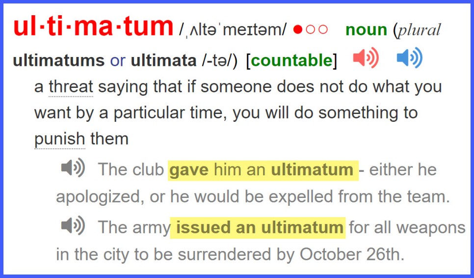 *ultimatum : 최후통첩