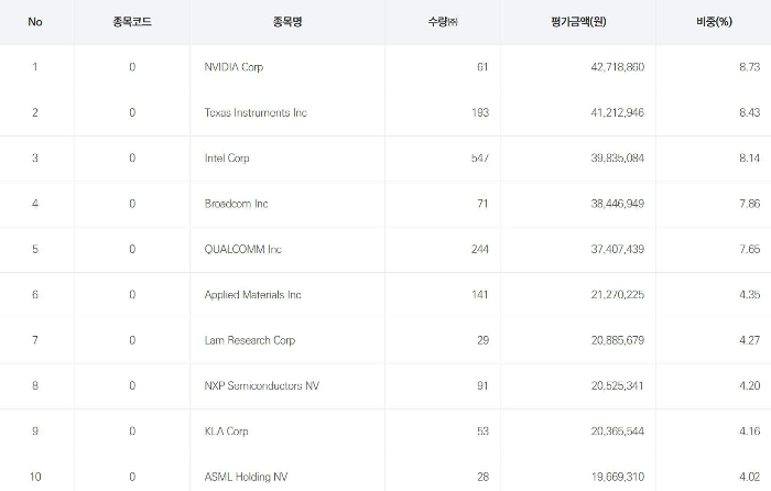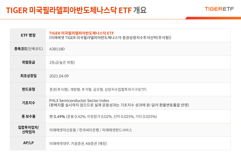 평가손익 : -2,080,729원 수익률 : -31.57% 보유수량 : 500주 매수금액 : 6590,729원 인수단가 : 12,756원 비중 : 6.19% TIGER 미국 필라델피아반도체나스닥