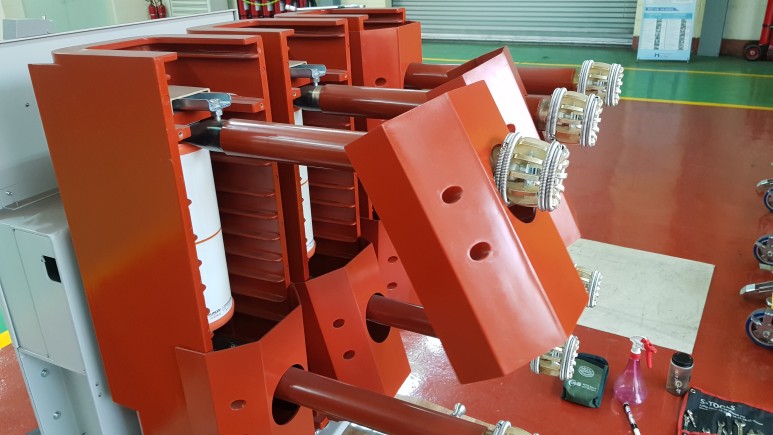 메인 컨텍스트부의 VI를 덮고 있는 절연 커버를 해체하고 절연부를 잘 닦아야 한다. 36kV의 고전압인 데다 제철공장이기 때문에 분진에 철립자가 많아 코로나가 발생해 백화현상이 나타나는 것이 다른 현장보다 많이 발생한다. 프로는 현상과 기본에 중점을 둡니다.